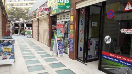 The driving school LA NIÑA situated in SAN EUGENIO, in the shopping center HOTEL H10 LA NIÑA, between the HIPERDINO EXPRESS and MINI KASINO.